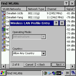 4、接下來(lái)點(diǎn)擊無(wú)線設(shè)置彈出菜單中的“Find WLANS”菜單項(xiàng),待搜索完后,選擇可以訪問的無(wú)線路由,在彈出菜單里選擇“Create profile”,如下圖所示:
