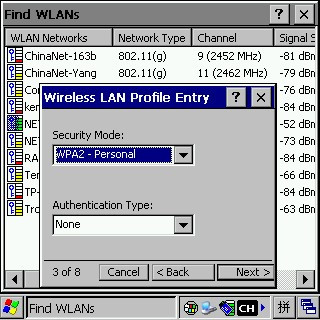 6、繼續(xù)點(diǎn)“Next”,出現(xiàn)“Security Mode”和“Authentication Type”的設(shè)置,這里需要注意的是,這兩個(gè)選項(xiàng)與具體的無(wú)線網(wǎng)絡(luò)設(shè)置有關(guān),最好進(jìn)入無(wú)線路由器的管理界面里弄清楚無(wú)線設(shè)置,一般Security Mode選“WPA2 - Personal”,Authentication Type選None: